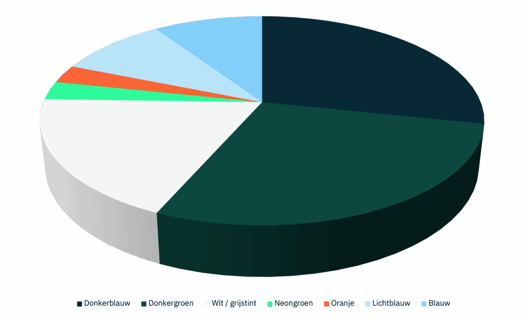 In onderstaande grafiek zie richtlijnen hoeveel van elke kleur terugkomen in de uitingen van WSP.