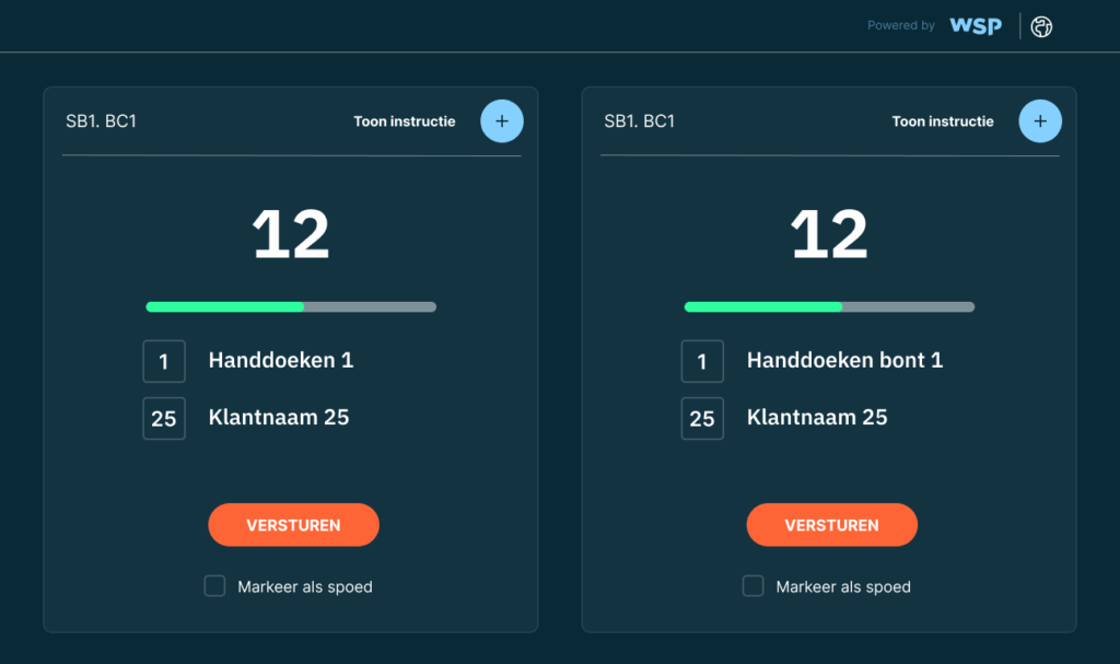 De vormentaal van WSP is geïnspireerd op de aanpak en oplossingen van WSP. De banen zijn een knipoog naar de letterlijke banen als oplossing, maar ook als het verbindende element tussen alle processen, de mensen en de materialen die ze door de wasserij transporteren. Ze symboliseren precies waar WSP voor staat, verbinding, het proces en traject en de samenhang tussen mens en machine. Door deze vorm consistent te gebruiken ontstaat één herkenbare visuele lijn door alle middelen heen.